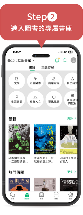 Step2點按「借閱」,即可開啟電子書刊,享受數位閱讀。( 線上閱讀建議使用 Chrome 或 IE11 瀏覽器 )