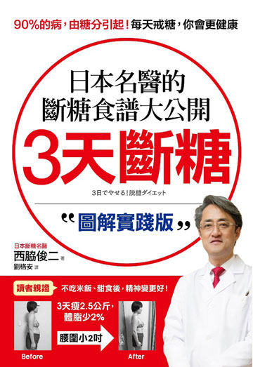 獨創「斷糖飲食法」的日本名醫西脇俊二,親身實踐此方法後,3個月瘦17公斤,體脂更只剩8%,因此在日本造成廣大回響。由於詢問電話不斷,西脇醫師特別公開他親自設計的「3天斷糖計畫」,只要每天按照食譜吃,再搭配運動半小時,任誰都能輕鬆瘦下來,身體一旦輕盈,人也會更有精神。